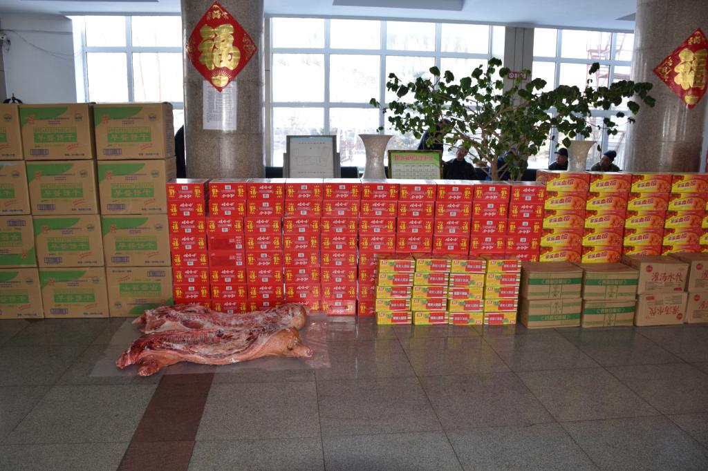 2月8日上午,牡丹江市委副书记、政法委书记韩嘉彬,组织部副部长文明,牡丹江市民政局局长孙玉华,牡丹江市安监局局长杜光辉到我市城乡福利养老中心进行春节慰问。穆棱市市委副书记惠金山,市委常委、政法委书记田可柱,市民政局局长刘海波陪同,为养老中心的老人们带来了水果、饺子、饼干、猪肉等慰问品。